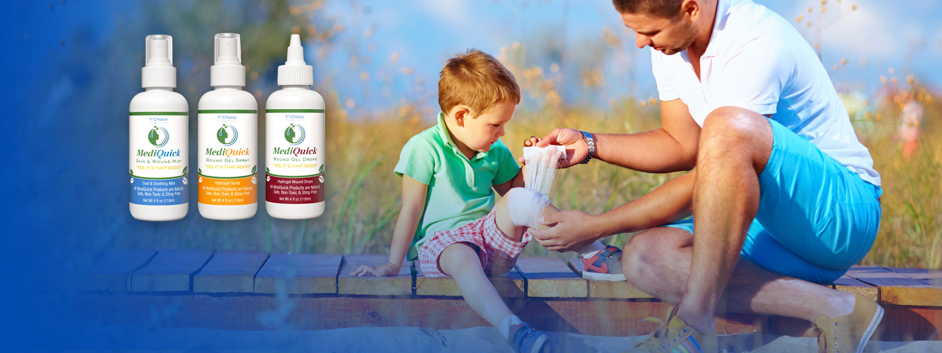 MediQuick offers a range of advanced first-aid solutions designed for effective and natural skin and wound care. The MediQuick Mist provides 12-hour action, quick relief, and healing for various skin issues like cuts, burns, rashes, and acne, in a no-sting formula safe for all ages and pets. The MediQuick Gel Spray features a thicker hydrogel that adheres well to larger areas, offering long-lasting support for sunburns, eczema, and inflamed skin while minimizing scarring. For precision application, the MediQuick Gel Drops are perfect for smaller spots, providing a mess-free, soothing solution that speeds healing and leaves skin smoother. All products are cruelty-free, vegan-friendly, and made in the USA, ensuring safe, high-quality care for your family and pets